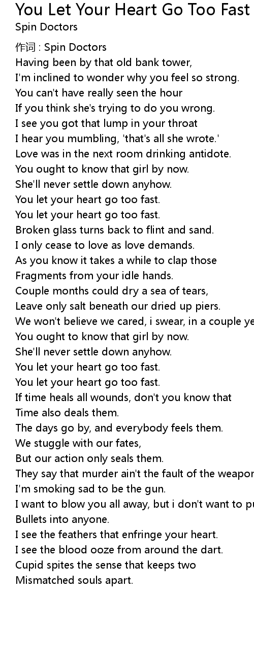 | You let your heart go too fast. | |