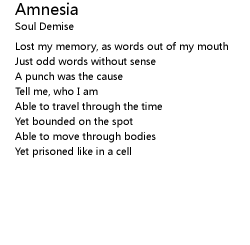 | Lost my memory, as words out of my mouth | |