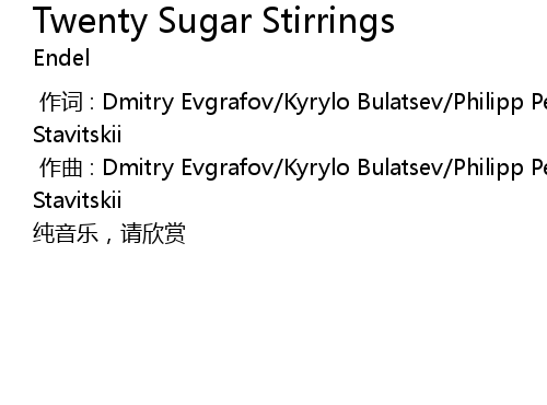 | [00:01.00] | zuo qu : Dmitry Evgrafov Kyrylo Bulatsev Philipp Petrenko Oleg Stavitskii |