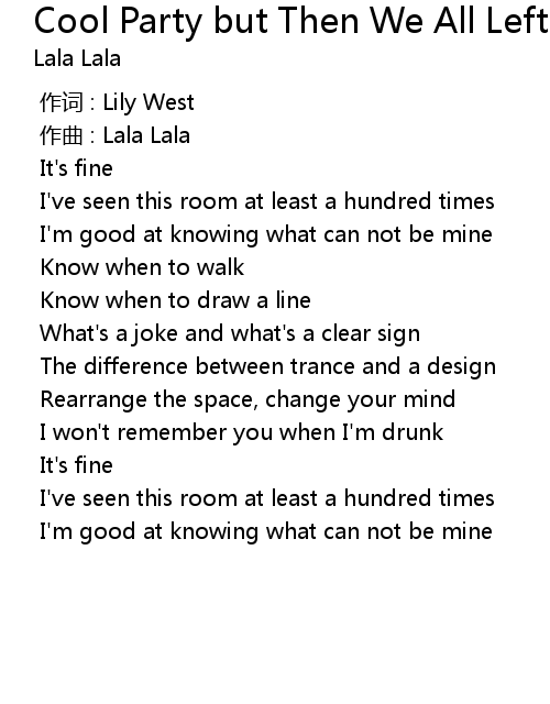| Song | Cool Party but Then We All Left |