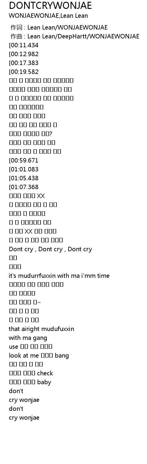 | [00:01.000] | zuo qu : Lean Lean DeepHartt WONJAEWONJAE |