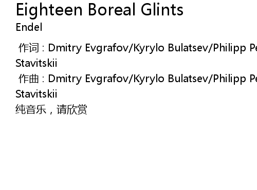 | [00:01.00] | zuo qu : Dmitry Evgrafov Kyrylo Bulatsev Philipp Petrenko Oleg Stavitskii |