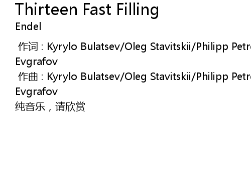 | [00:01.00] | zuo qu : Kyrylo Bulatsev Oleg Stavitskii Philipp Petrenko Dmitry Evgrafov |