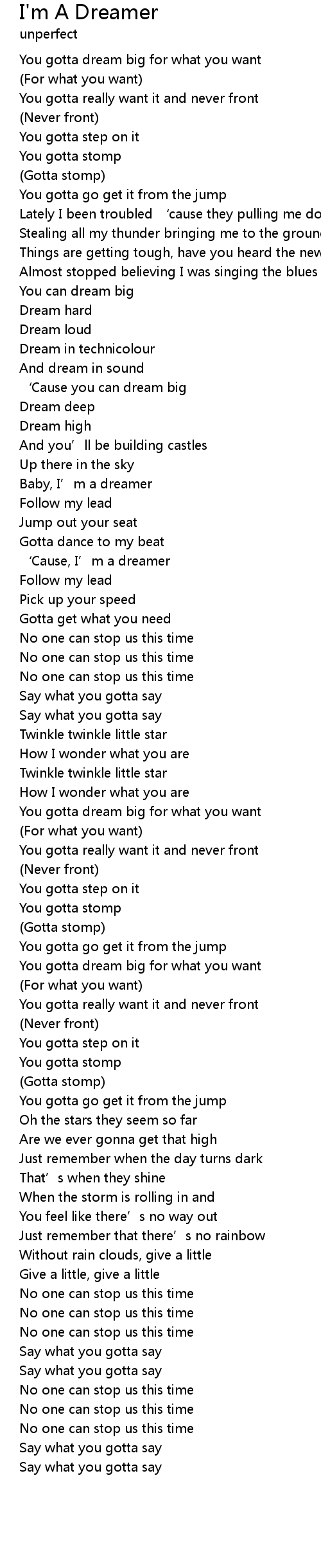 | [00:50.12] | Baby, I’m a dreamer |