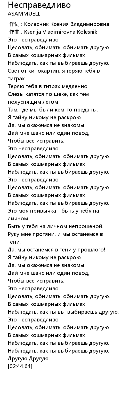 Несправедливо  Lyrics