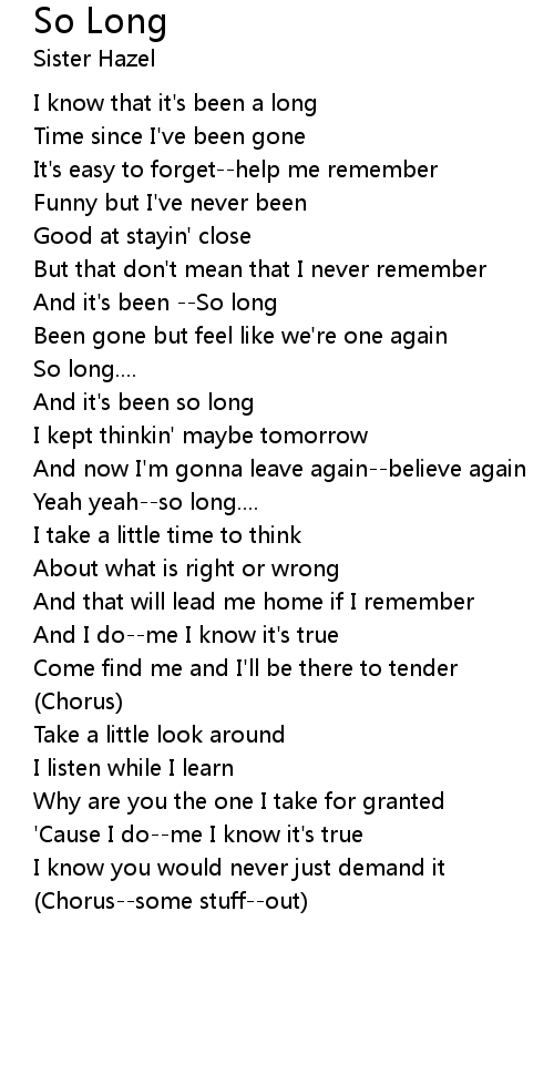 And it's been --So long |