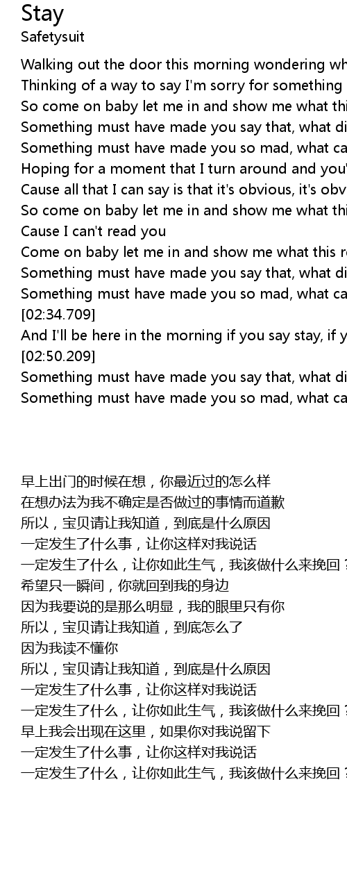 | [02:47.619] | And I'll be here in the morning if you say stay, if you say stay to me |