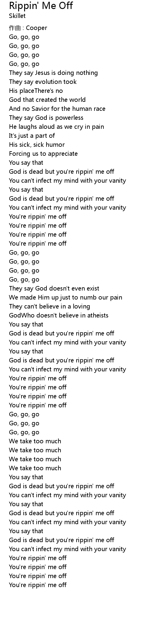 | God is dead but you' re rippin' me off | |