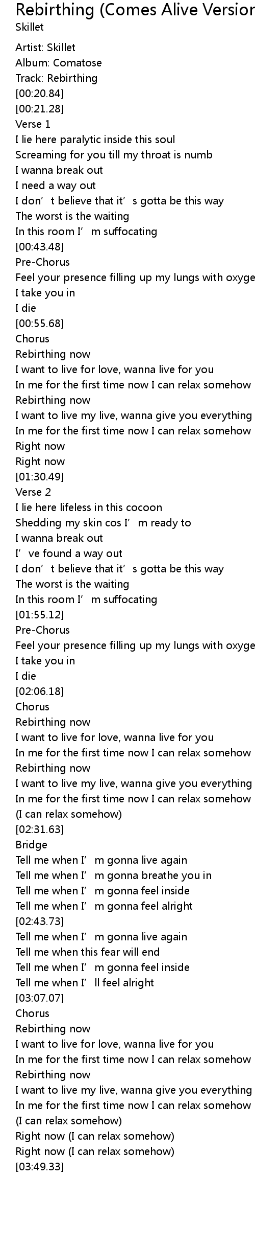 | [00:46.12] | Feel your presence filling up my lungs with oxygen |