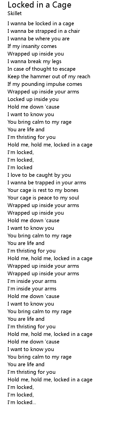 Hold me, hold me, locked in a cage |