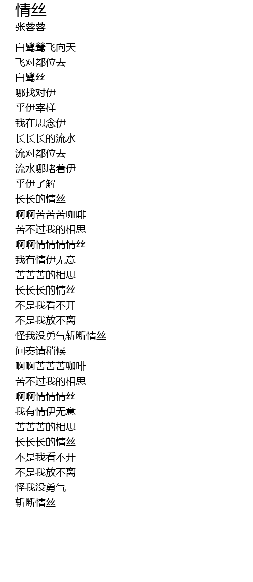 | [02:41.710] | kǔ kǔ kǔ de xiāng sī |