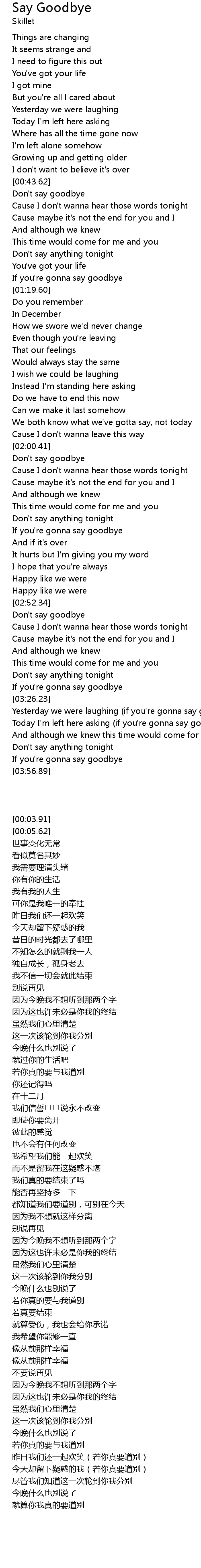 | [03:54.83] | If you're gonna say goodbye |