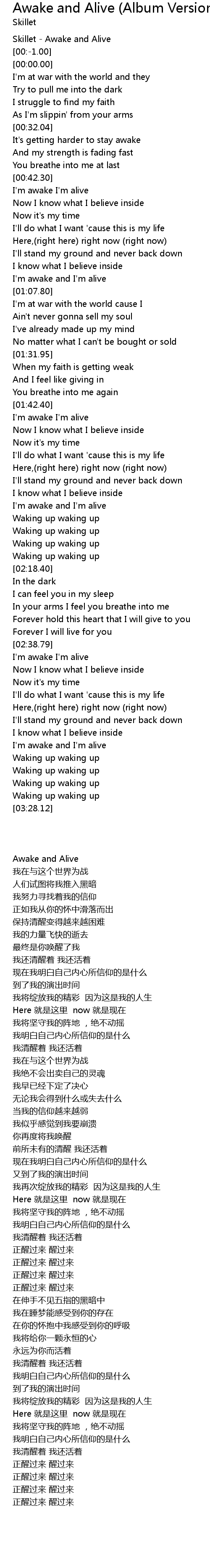 | [02:51.70] | I'm awake I'm alive |