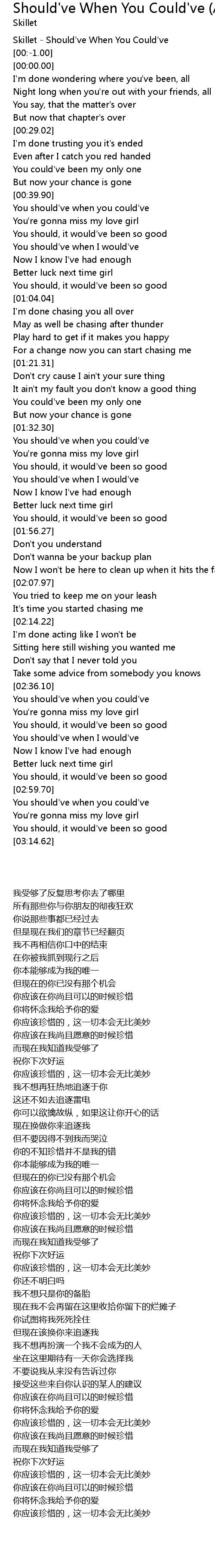 | [00:-2.00] | Skillet - Should've When You Could've |