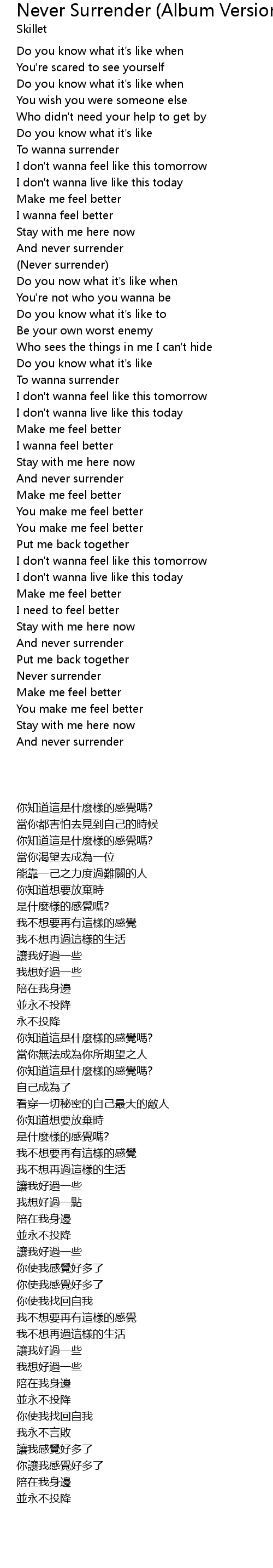 | [00:44.120] | To wanna surrender |