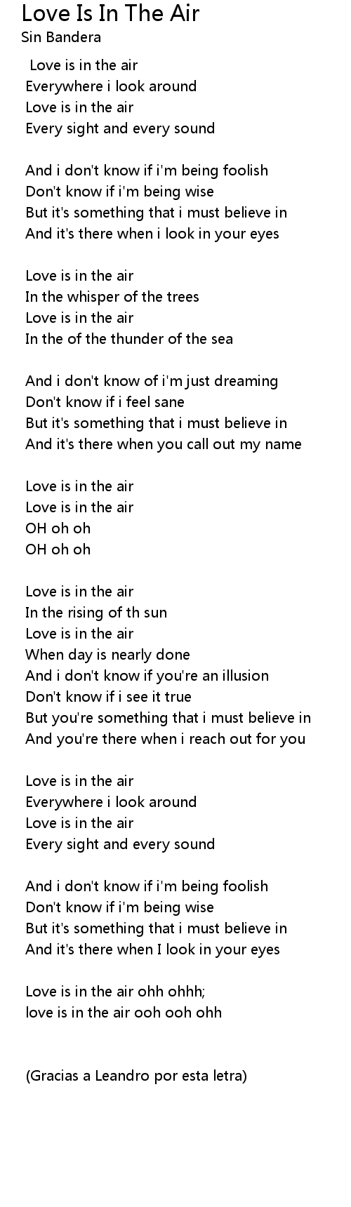 Love is in the air ohh ohhh; |