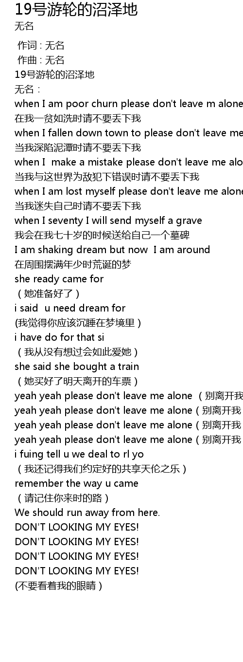 | [00:34.958] | when I am poor churn please don' t leave m alone |