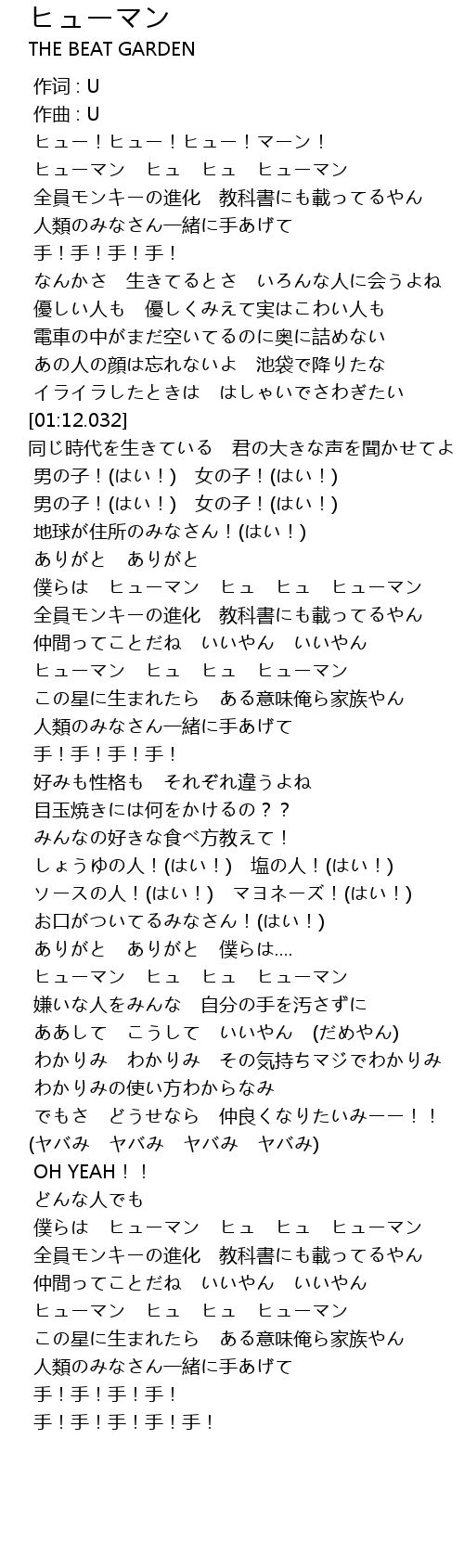 | [03:06.706] | 僕らは ヒューマン ヒュ ヒュ ヒューマン |