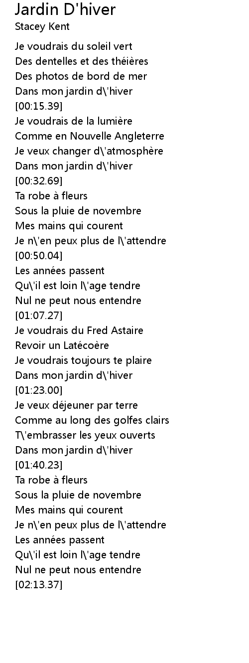 | [00:13.01] | Dans mon jardin d\'hiver |