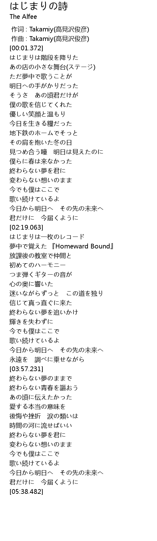 | [02:36.853] | 夢中で覚えた 『Homeward Bound』 |
