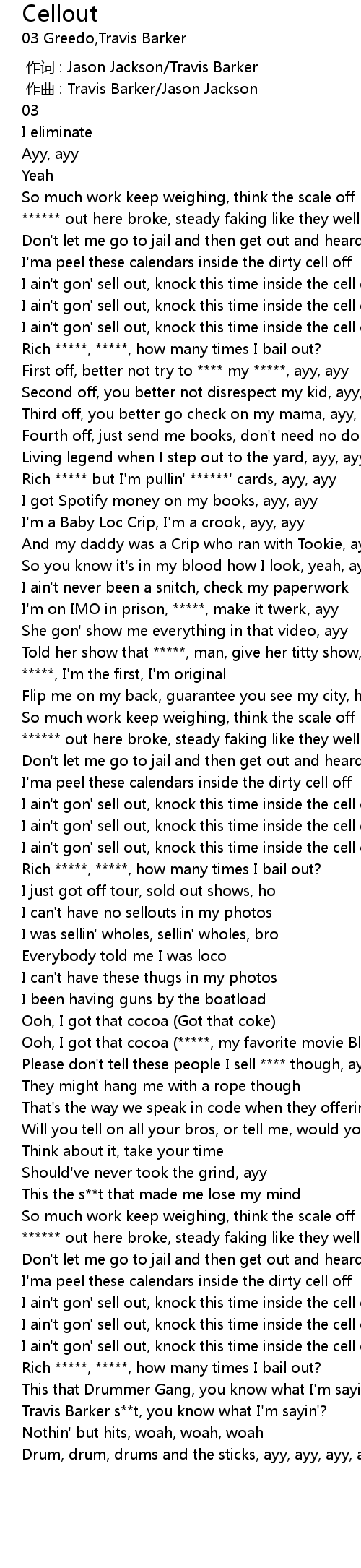 | [00:51.12] | Rich ***** but I'm pullin' ******' cards, ayy, ayy |