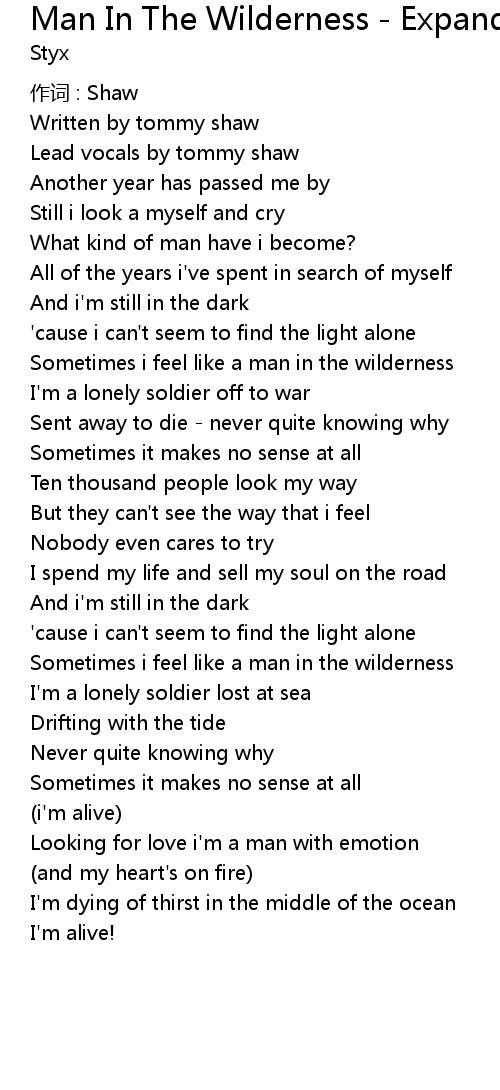 | Sometimes i feel like a man in the wilderness | |
