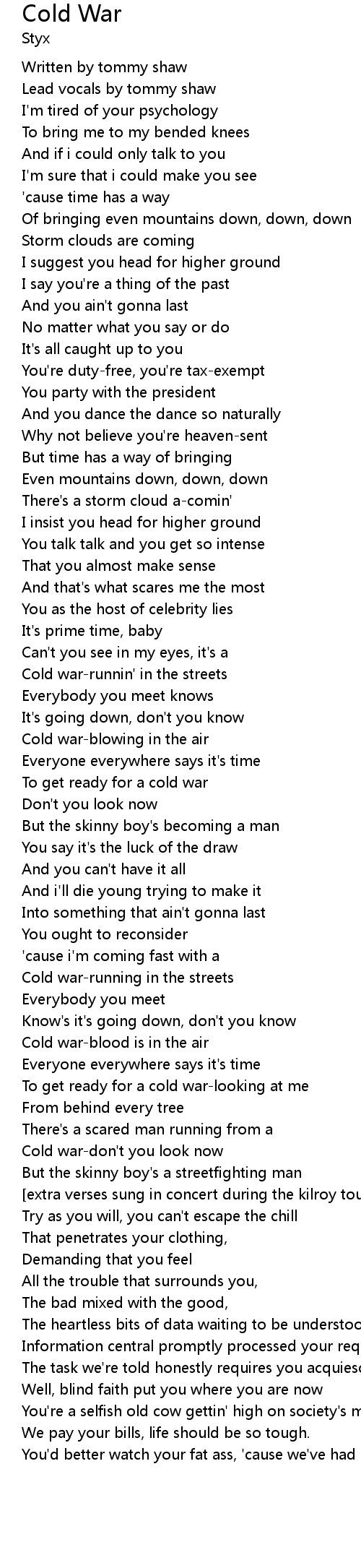 Cold War Lyrics