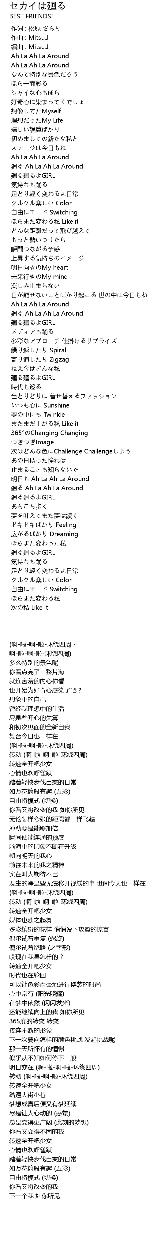 | [02:47.657] | 廻る Ah La Ah La Around |