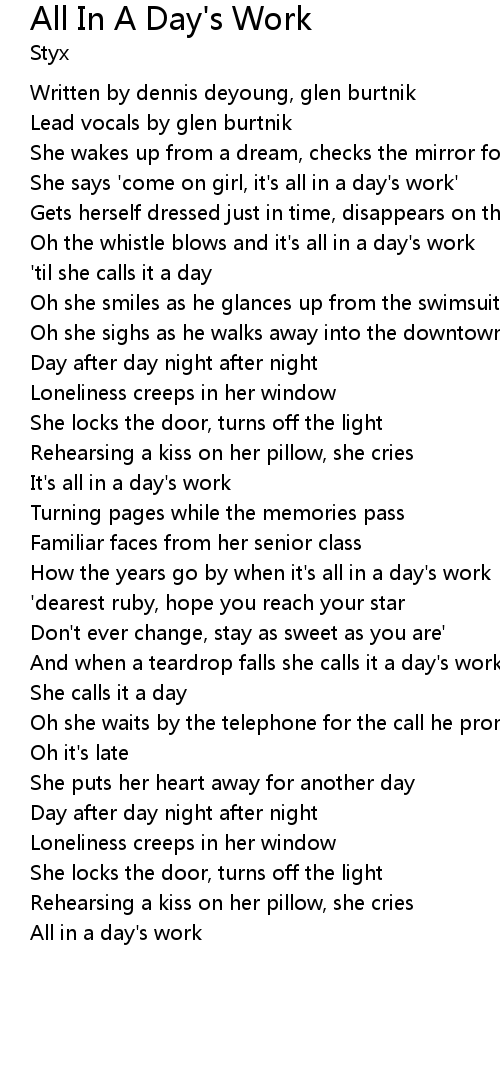 All In A Day's Work Lyrics