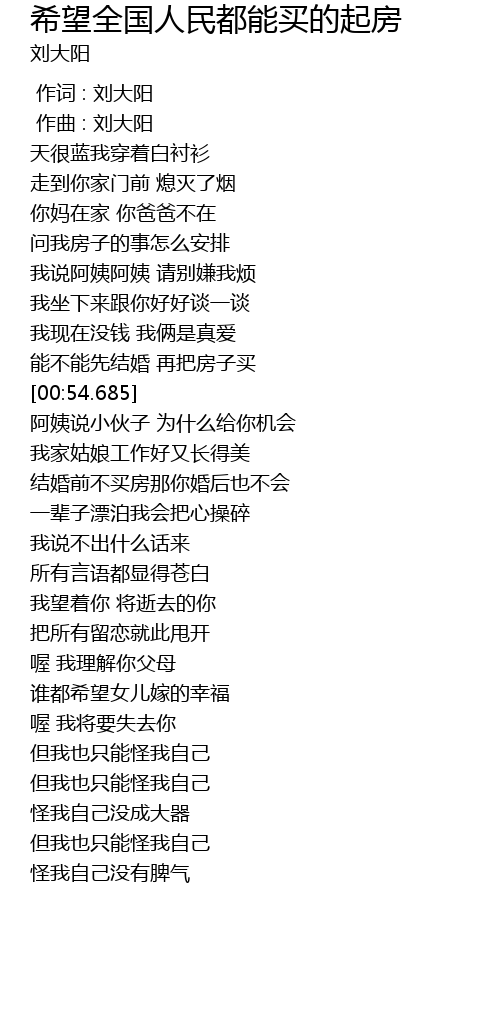 | Song | 希望全国人民都能买的起房 |