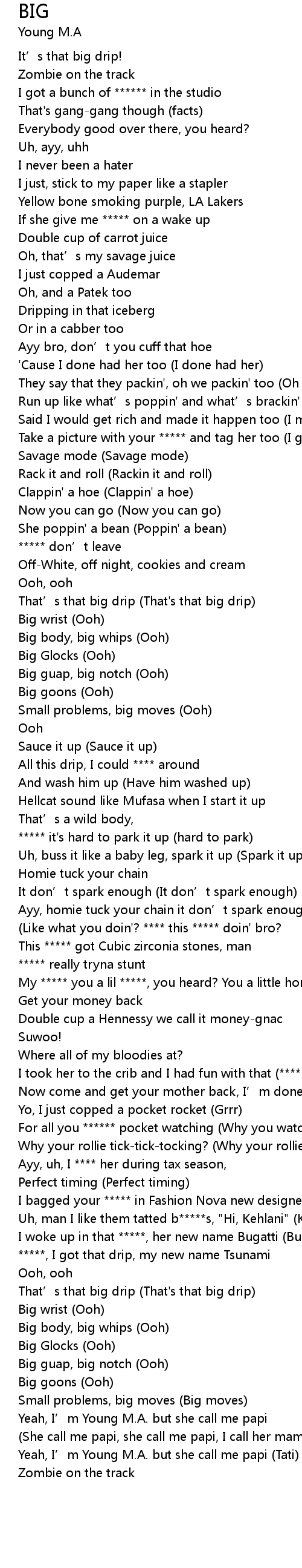 | [02:49.54] | Yeah, I’m Young M.A. but she call me papi |