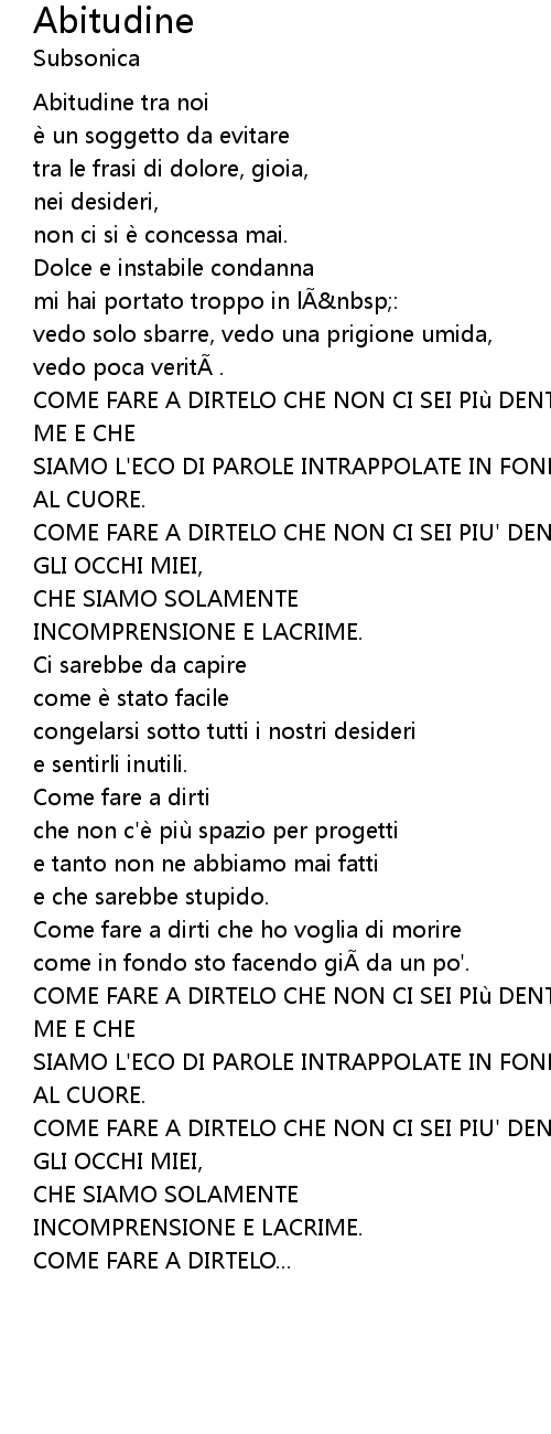 | COME FARE A DIRTELO CHE NON CI SEI PIù DENTRO | |