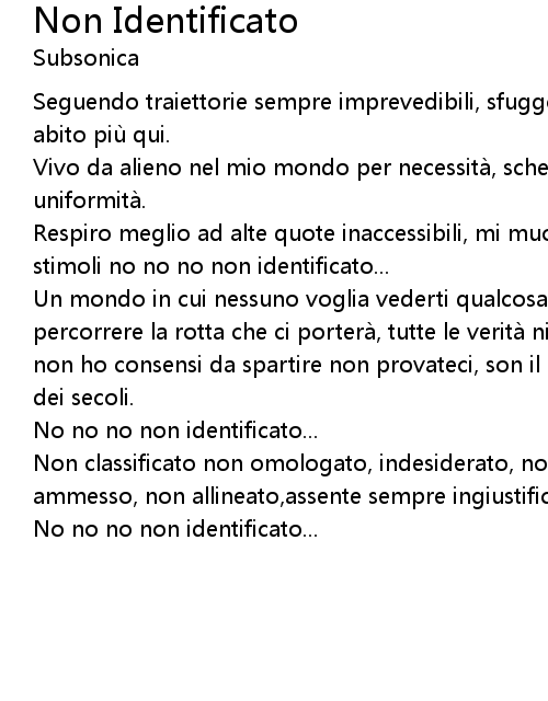 | Seguendo traiettorie sempre imprevedibili, sfuggo ai controlli radar gia non abito piu qui. | |