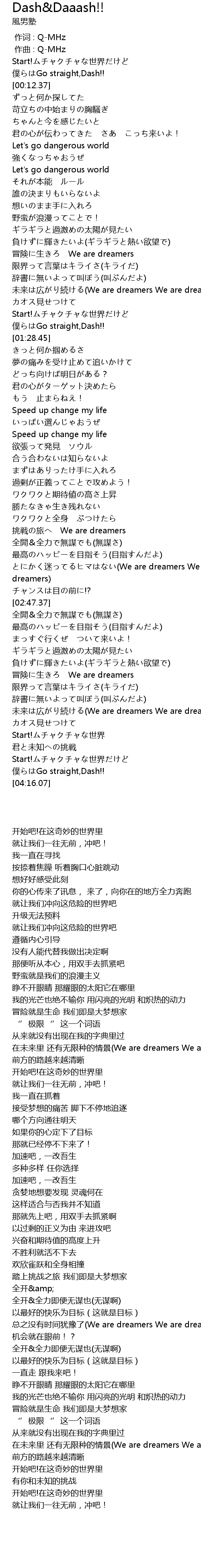 | [00:03.67] | 僕らはGo straight,Dash!! |