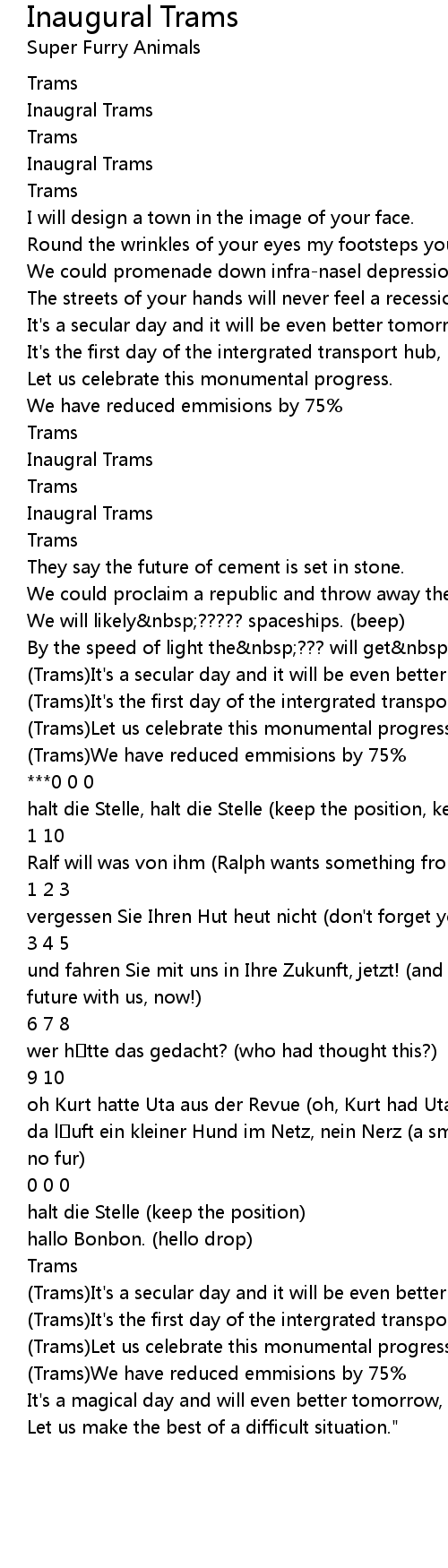 | Song | Inaugural Trams |