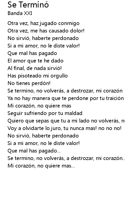 | Se termino, no volvera s, a destrozar, mi corazo n... | |