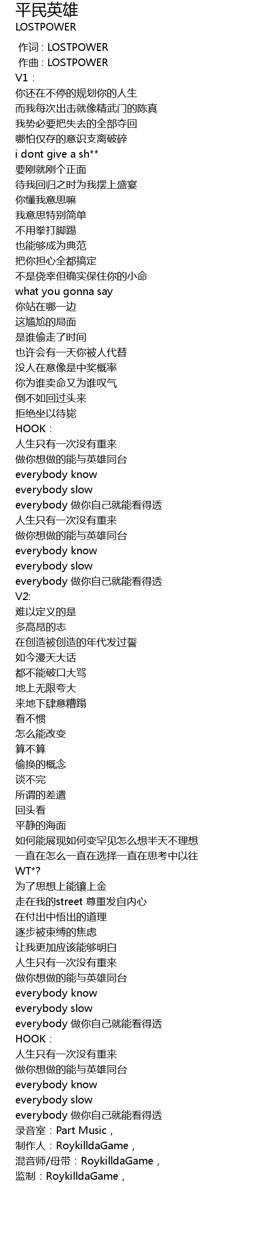 | [00:01.000] | zuo qu : LOSTPOWER |