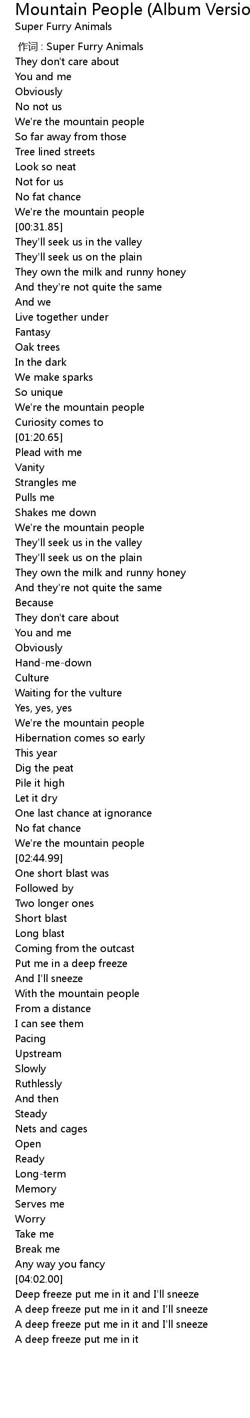 | [04:10.00] | A deep freeze put me in it and I'll sneeze |