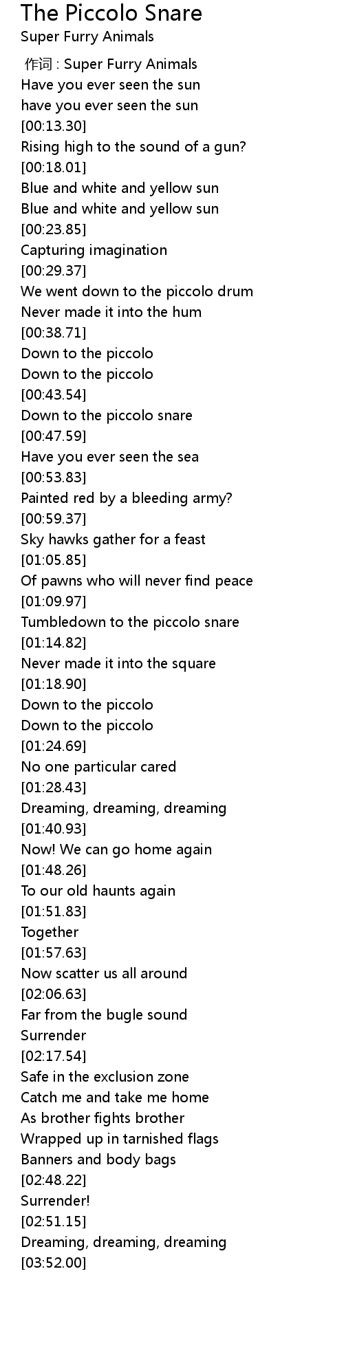 | [00:00.00] | 作词 : Super Furry Animals |