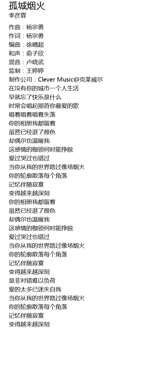 | [00:01.78] | 制作公司:Clever Music@克莱威尔 |