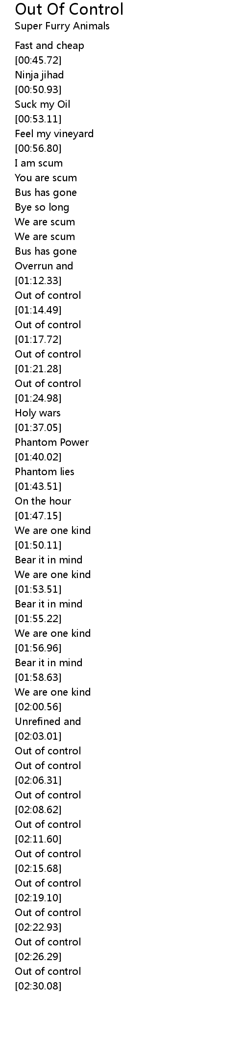 | [02:03.53] | Out of control |
