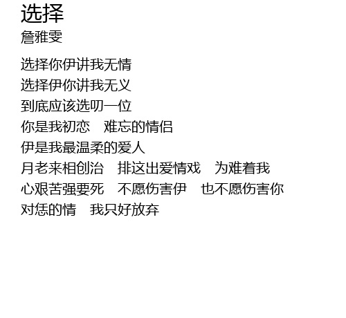 | 心艰苦强要死 不愿伤害伊 也不愿伤害你 | |