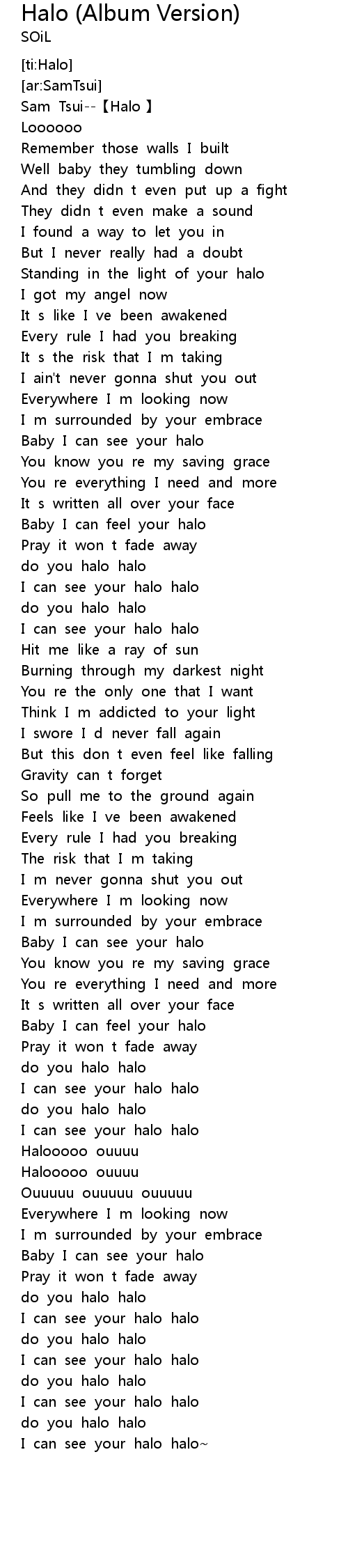 | [00:01.30] | Sam Tsui--【Halo 】 |