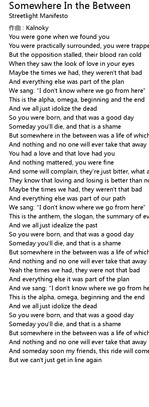 | Song | Somewhere In the Between |