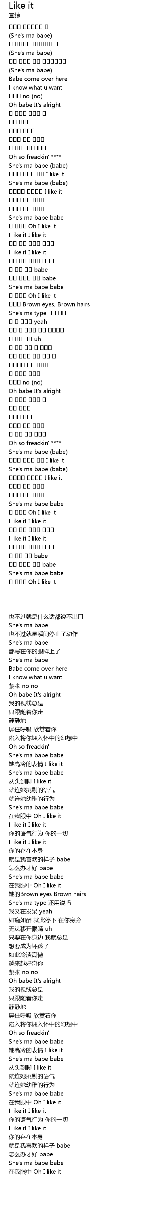 | [01:40.314] | 내 눈에는 Oh I like it |
