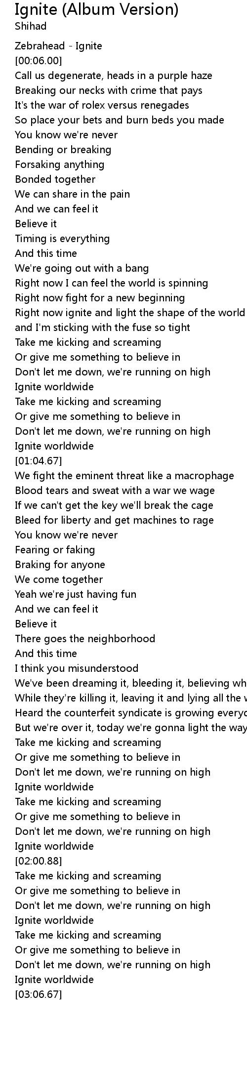 | [01:01.93] | Ignite worldwide |
