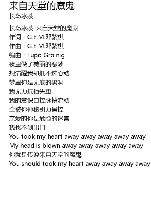 | [00:00.00] | 长岛冰茶-来自天堂的魔鬼 |