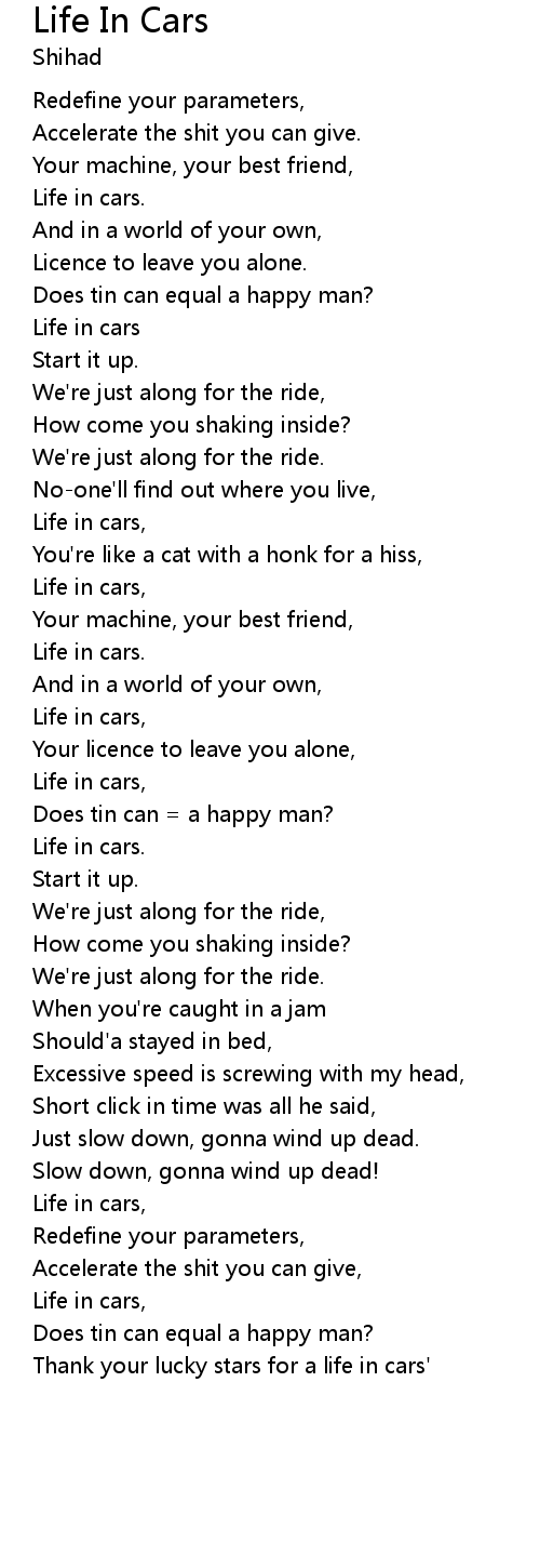 Life In Cars Lyrics
