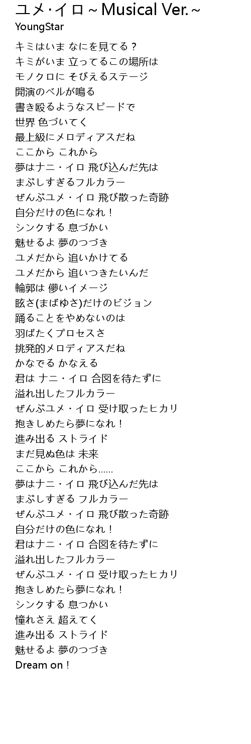 | Song | ユメ・イロ~Musical Ver.~ |