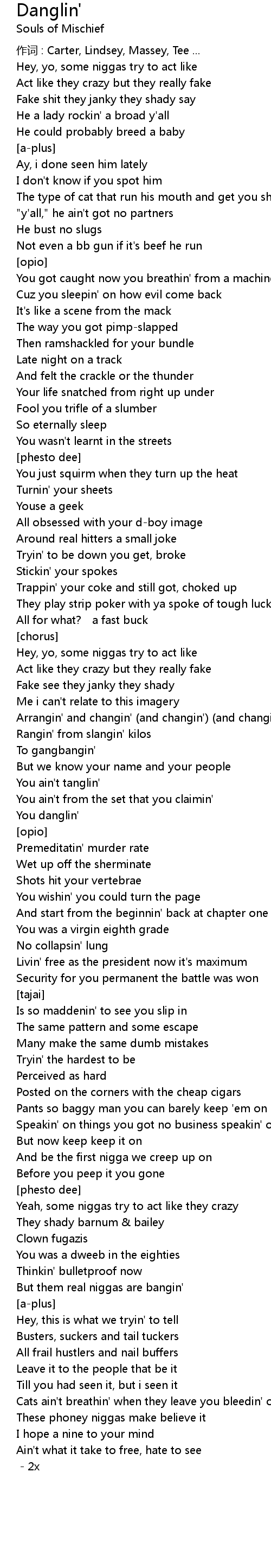 | Song | Danglin' |